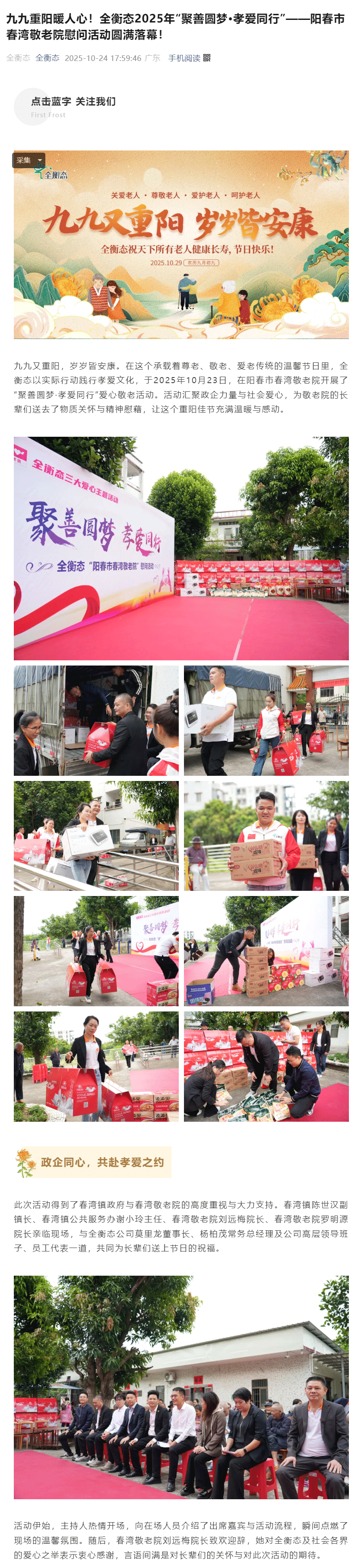 九九重阳暖人心!全衡态2025年“聚善圆梦·孝爱同行”——阳春市春湾敬老院慰问活动圆满落幕!